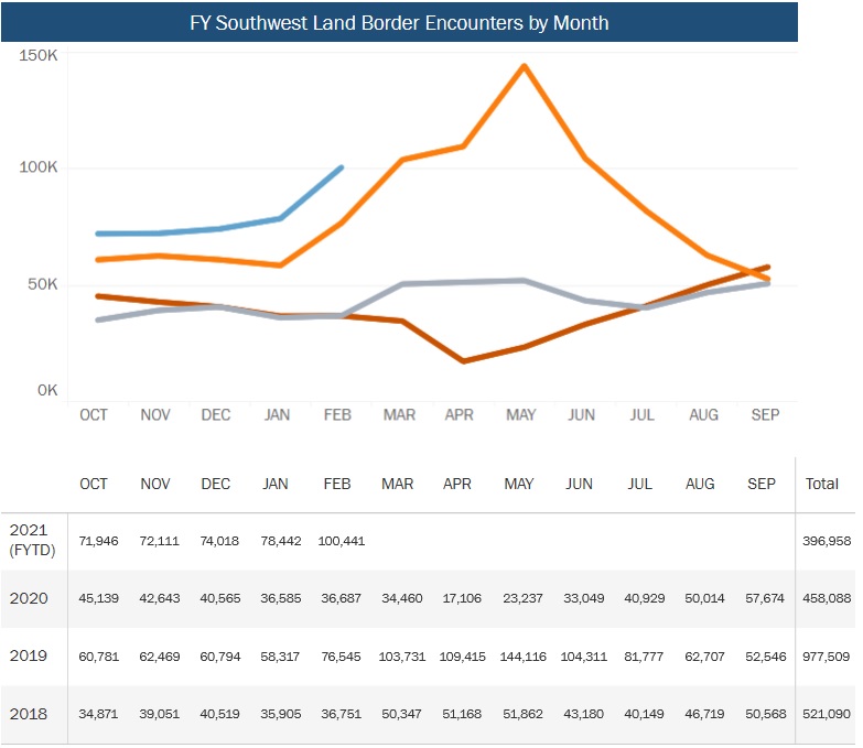 This image of the chart, above, was pulled from the Customs and Border Protection – Southwest Land Border Encounters