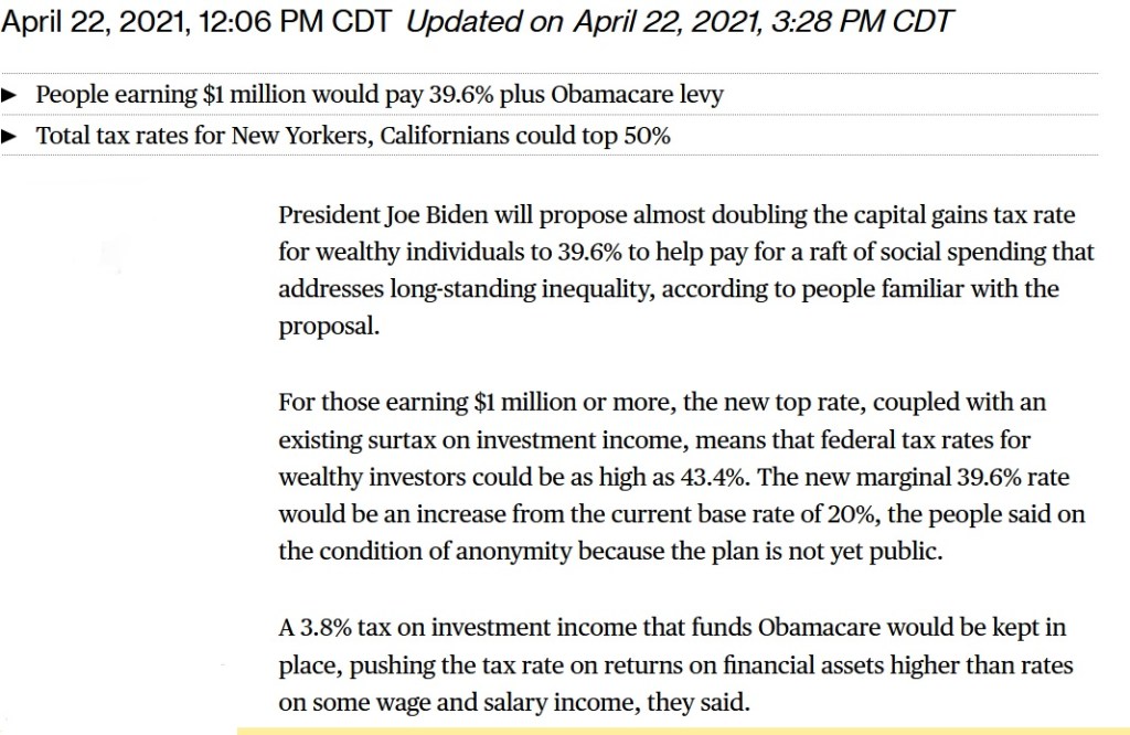 Bloomberg – Biden Eyeing Tax Rate as High as 43.4% in Next Economic Package