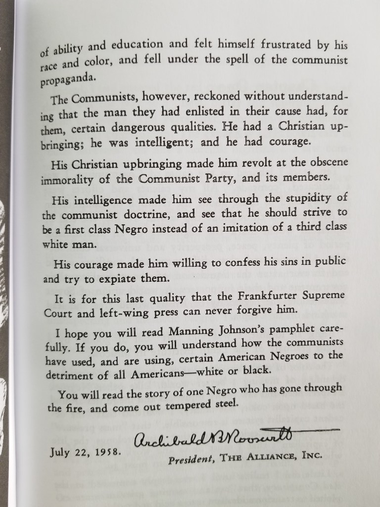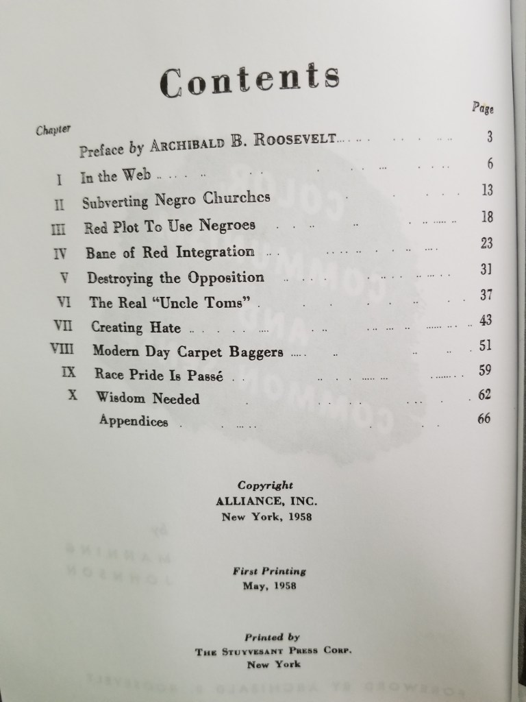 Out of curiosity I ordered the book authored by Manning Johnson, his book is: Color, Communism and Common Sense.