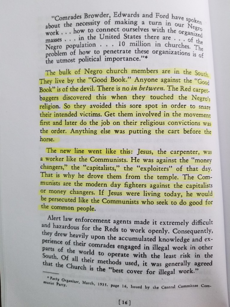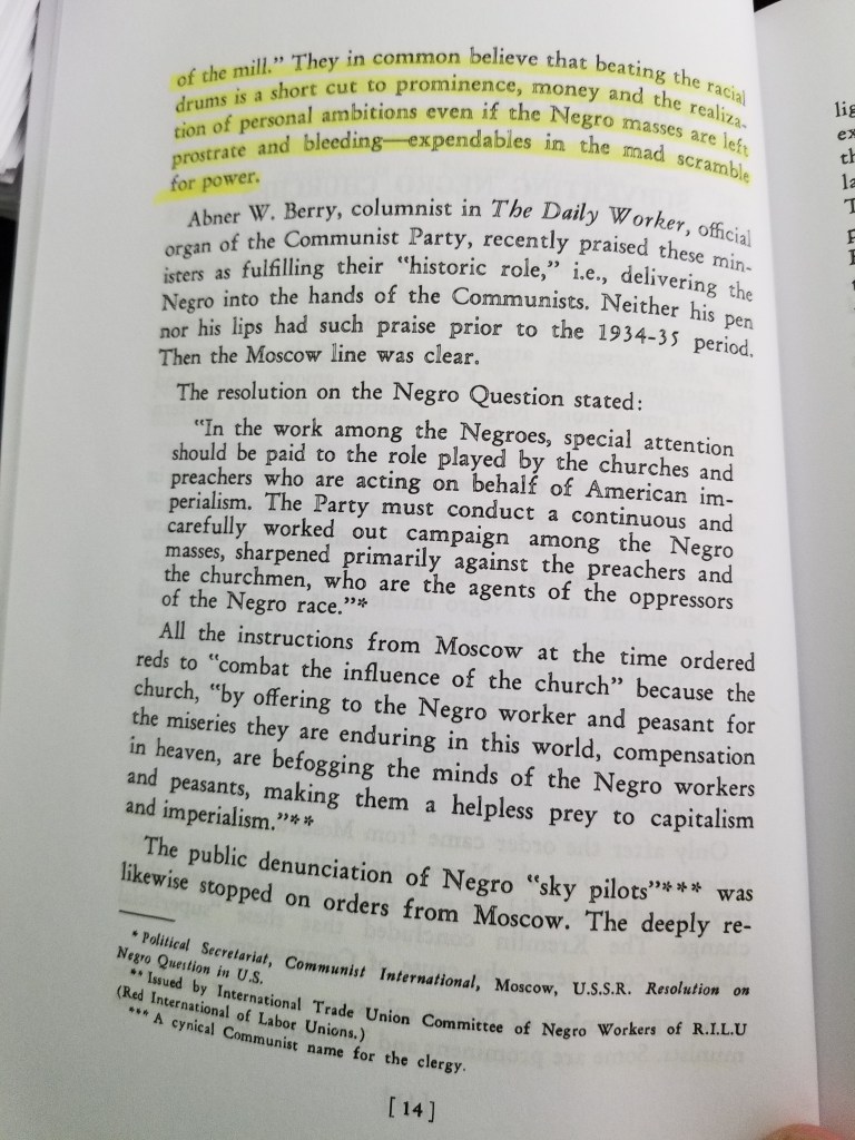 Let’s relate this twitter video of Colin Kaepernick… From what Manning Johnson stated in his book, “…Obviously, this line deliberately spread by the Communists, leads to the worst kind of mischief. It strengthens and creates racial prejudices and lays the basis for sharp racial conflicts. Shirking social responsibility and blaming others may be the easy way, but it is only a short cut to Communist slavery…”