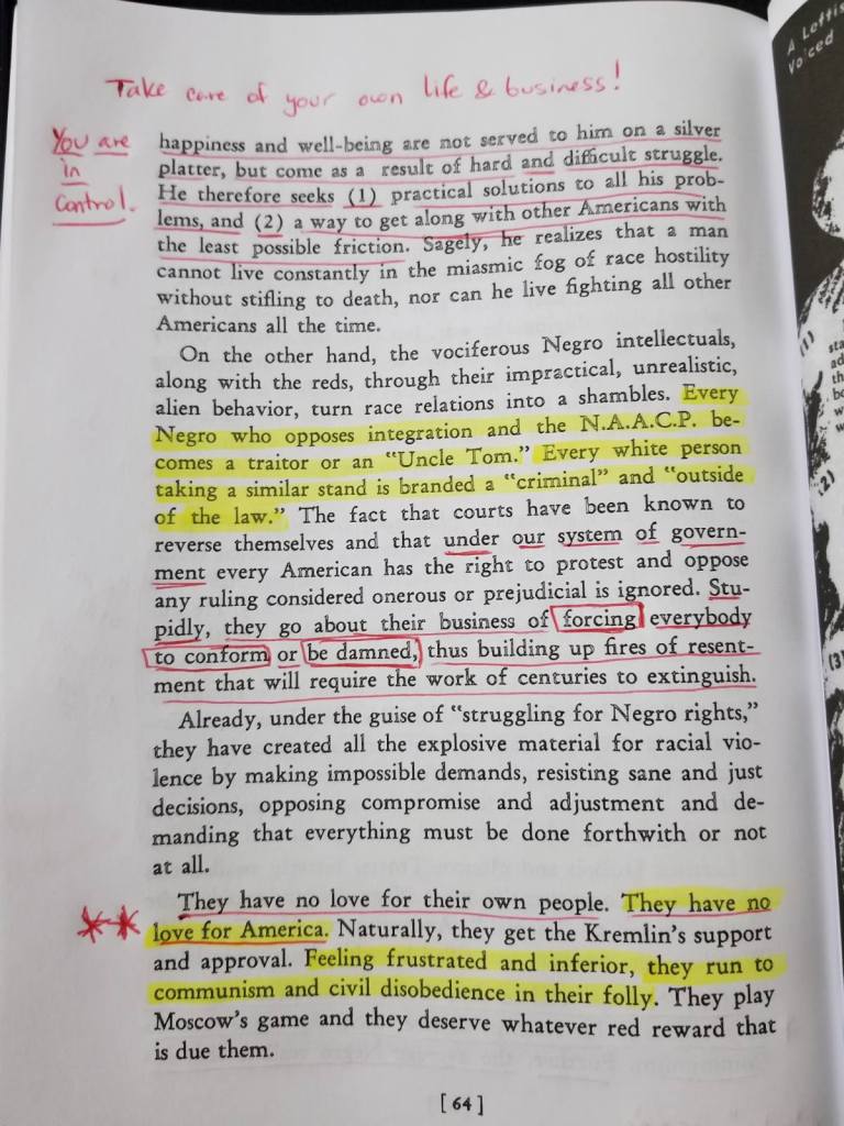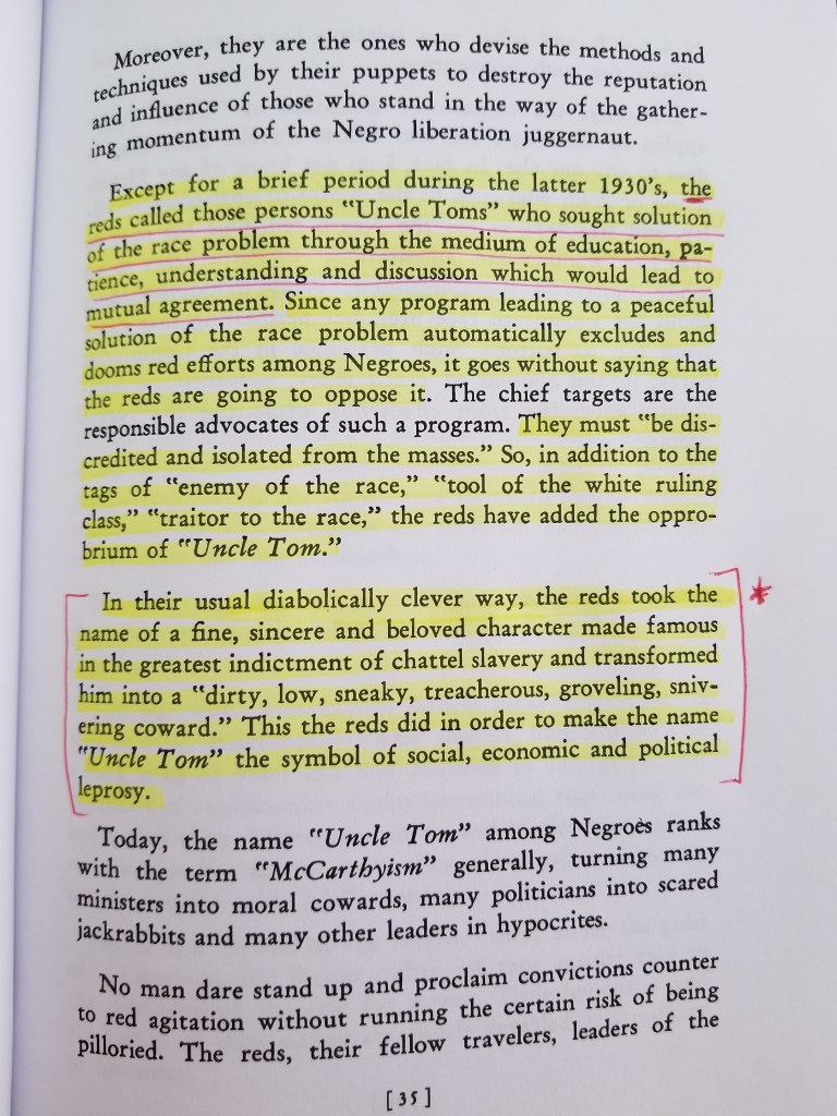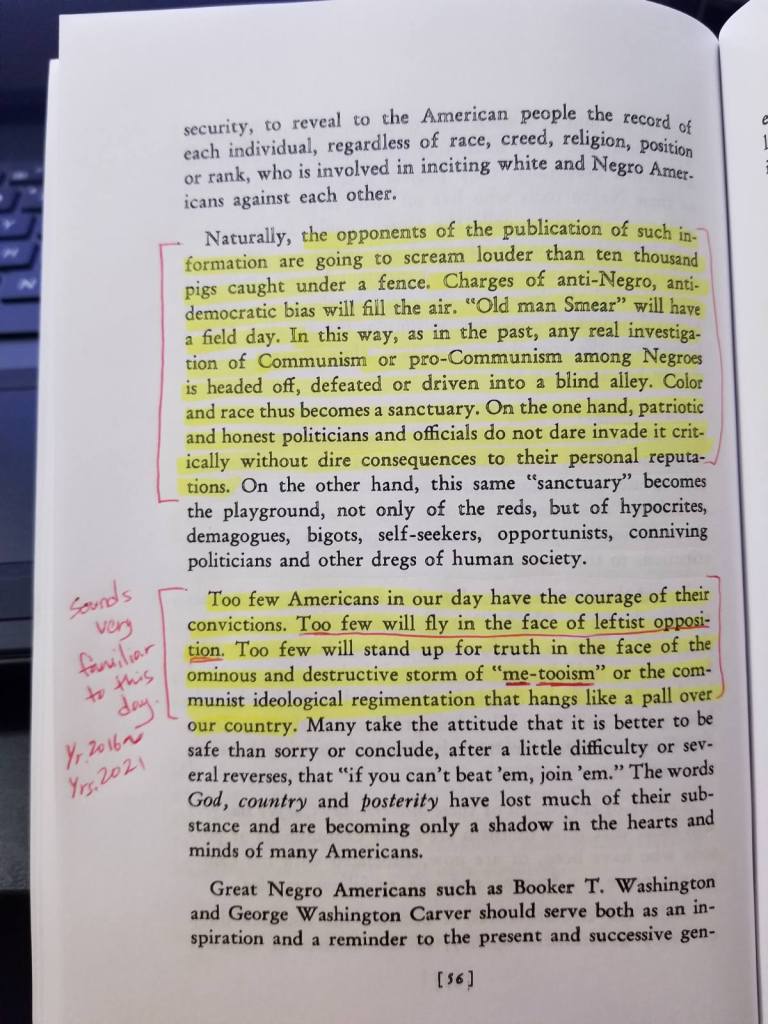 Furthermore, other excerpts from his book that closely relates to the above twitter video, “…Labeling opponents is a specialty of the reds. ‘Smear’ is a cardinal technique. Any label found in the red stockpile, you may be sure, is carefully made and selected to draw the maximum hate to the person or persons, the group or the organization to which it is attached…”