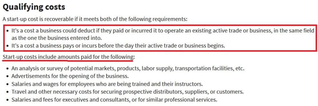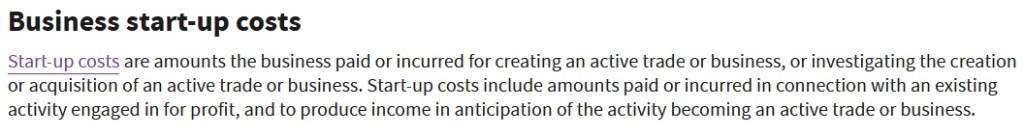 One of many which I won’t get into because the Federal Tax laws are in a whole other field of their own… are business start up costs. A simple explanation of business start up costs you can peruse on your own below and in the link provided.